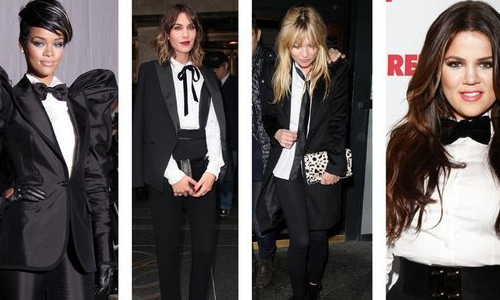 Women are slowly creeping into mens shoes...and their clothing, too, it seems. The classic male look took over womens fashion with everyone dressing themselves like James Bond but with obvious femininity. Celebrities were rocking runways all over suited up in suit pants, jackets and bow ties. Some did it with simplicity, while others try to get funky with their outfits. A special mention to bow ties as they seemed to exhaust all creativity in varied looks and patterns.